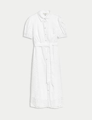 Pure Cotton Broderie Midi Shirt Dress M&S NZ